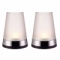 Le photophore Ouragan de Pernille Vea associe une base en inox et caoutchouc à un diffuseur amovible en verre sablé. Un emplacement est prévu au fond de la base pour une bougie chauffe-plat.
