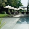 Variété des tailles, coloris de toile proposés et maniabilité en font un excellent produit contract pour équiper des terrasses de restaurants ou de cafés et des bords de piscine d’hôtels.