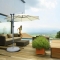 Grâce à ses proportions et à son pied déporté, il dispense une ombre généreuse sous laquelle il est possible de disposer une grande table entourée de chaises, un canapé et des fauteuils ou encore des bains de soleil.