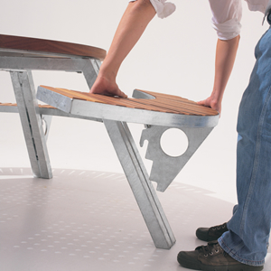 Un des bancs peut aussi être retiré pour qu'un convive en fauteuil roulant s'attable confortablement.