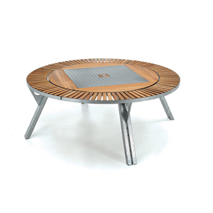 Le centre du plateau est en inox perforé pour faciliter l'évacuation de l'eau de pluie.