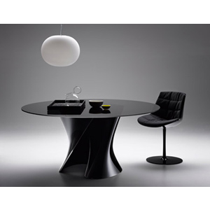 structure en ceramilux et plateau en cristel trempé gris fumé