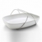 Résolument nomade, ce plat en porcelaine à feu de couleur blanche se complète d'une paire d'anses en acier inoxydable munies de patins en silicone.
